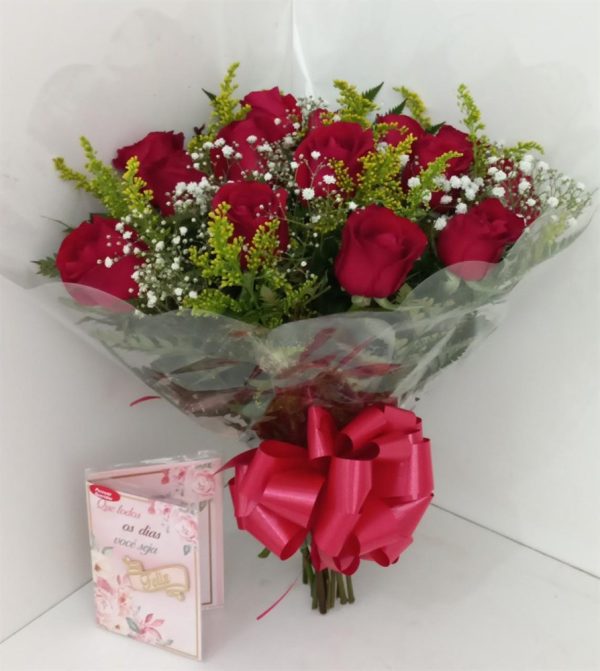 Bouquet 12 Rosas Vermelhas + Cartão de Mensagem Pronta