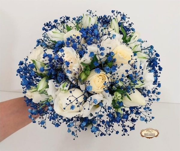 Bouquet de Noiva Rosas Brancas e Gipson Azul